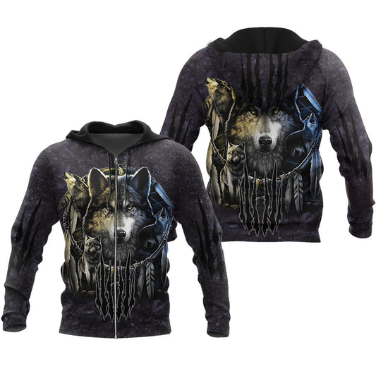 Darkness Dreamcatcher Wolf 3D Men Hoodies
